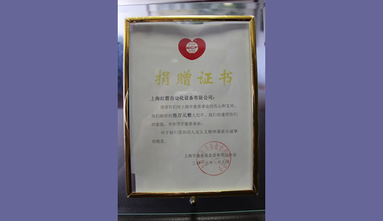 2016年,上海紅箭自動化設(shè)備有限公司為上海市慈善基金會捐款 2016